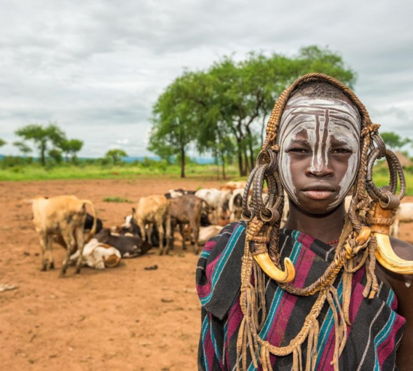 Visit the Karo tribe along the Omo River, famous for body scarification and face painting. Overnight in Turmi.